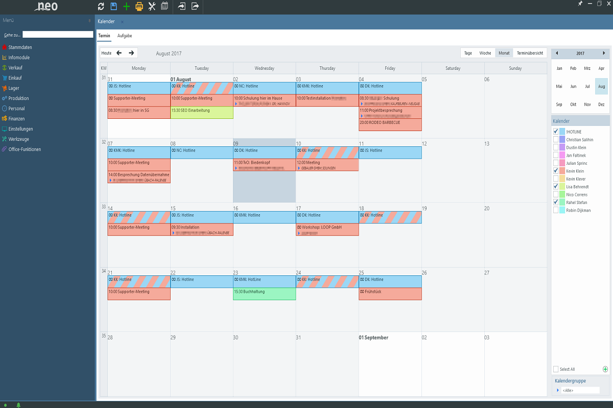 Easily manage appointments, tasks (to-dos) and documents for all employees or entire departments within the fully integrated calendar. Daily, weekly and monthly views provide you with an immediate overview of capacities and help you in scheduling. A recurring appointment/deadline wizard and the task management make sure you don’t miss a single deadline. To-dos can be scheduled in the calendar with a simple drag & drop provided with a target deadline and then reported back. Thus, you can generate delivery notes or invoices directly from calendar entries concerning the rental of objects or the performance of employees.