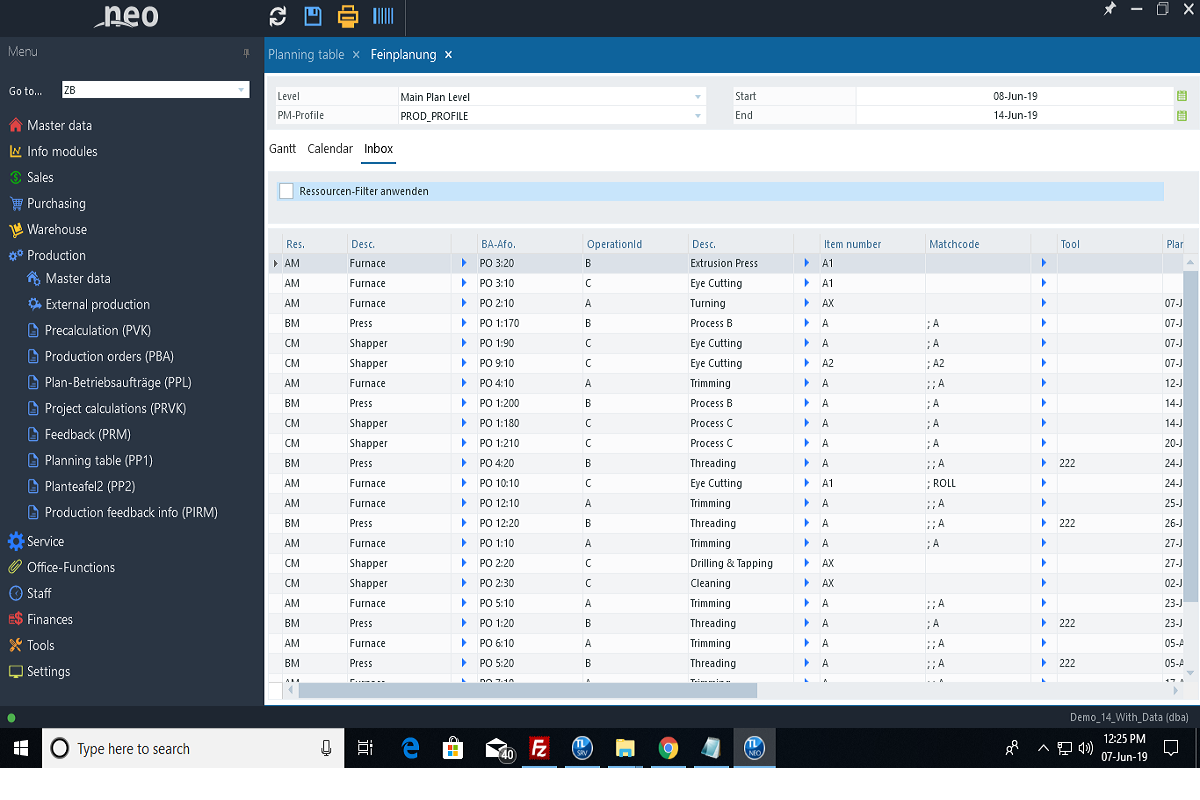 Gantt planning is used for scheduling and provides ideal support for determining any resource bottleneck. This also gives you a better overview of machine, resource and employee utilization within the company. The details of the selected work order are displayed with a right-click, and you can see the entire order or individual work sequences, so that these deadlines are not breached when re-planning. You can display each individual resource in a daily, weekly or monthly overview in the planning calendar.
